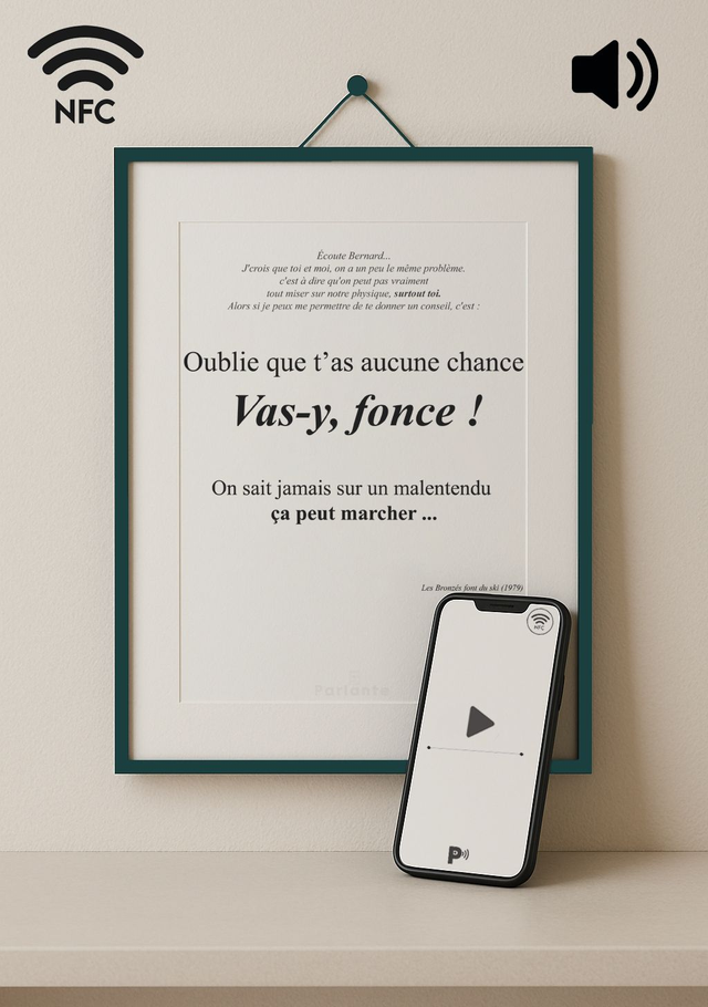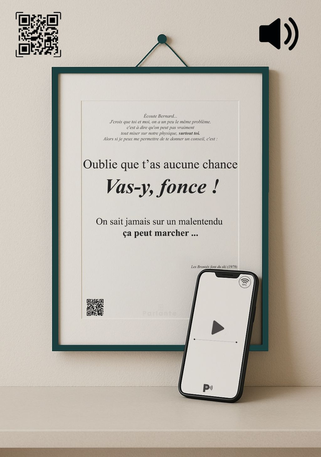 Affiche connectée citation cinéma Les bronzés font du ski | Vas-y fonce ! (Audio ou Vidéo inclus)