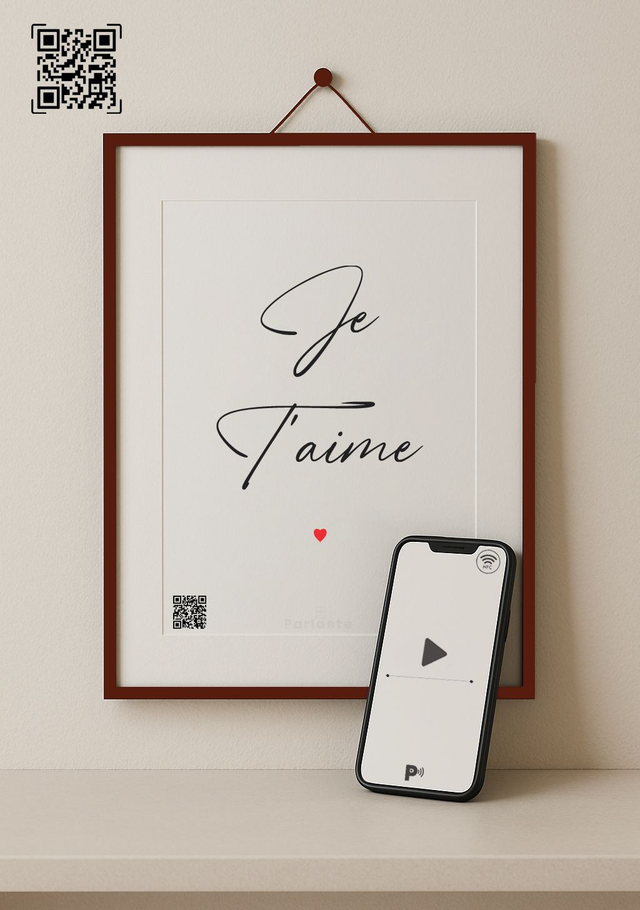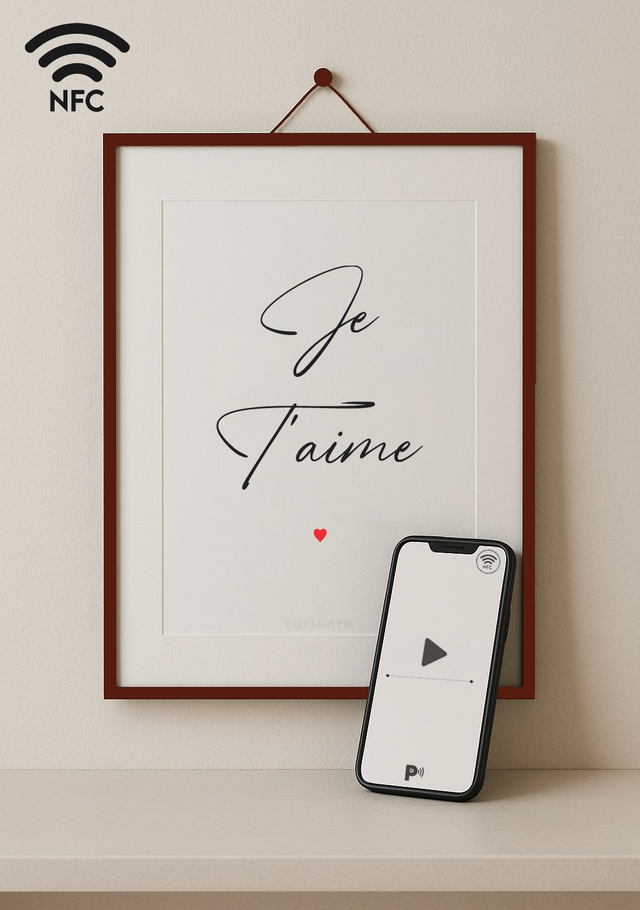 Les affiches peuvent être proposées seules, ou accompagnées d’un QR code ou d’une puce NFC (au dos de l'affiche) permettant d’accéder à un message audio, une vidéo souvenir, une galerie photo ou même un lien vers une plateforme en ligne. Il vous suffit d’approcher votre smartphone pour dévoiler son contenu.