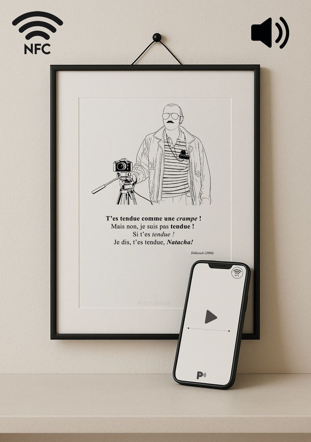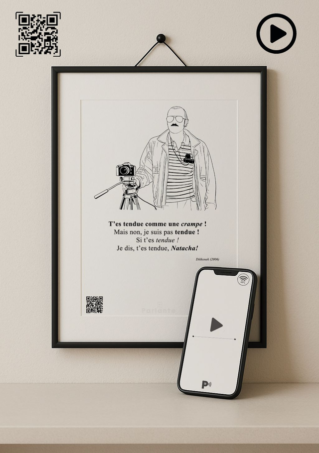 Affiche minimaliste connectée cinéma Dikkenek | T'es tendue comme une crampe ! (Audio ou Vidéo inclus)