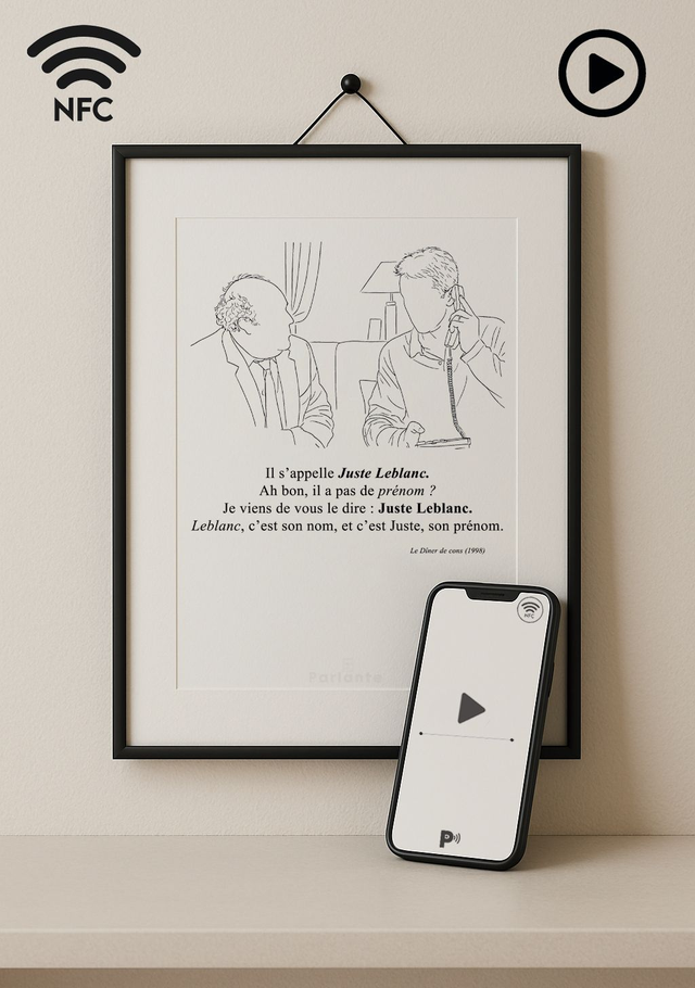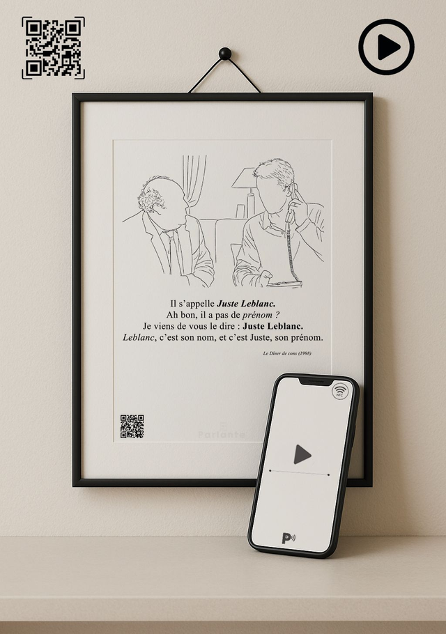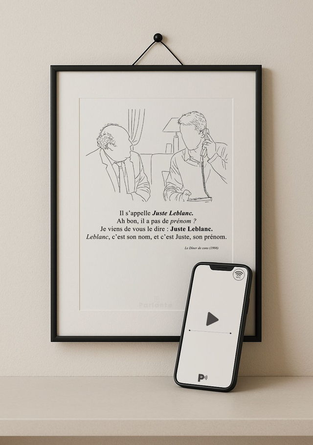 Affiche minimaliste connectée cinéma Le Diner de cons | Juste Leblanc ! (Audio ou Vidéo inclus)