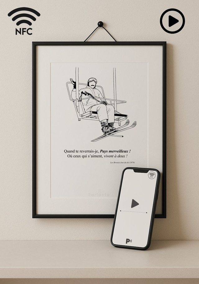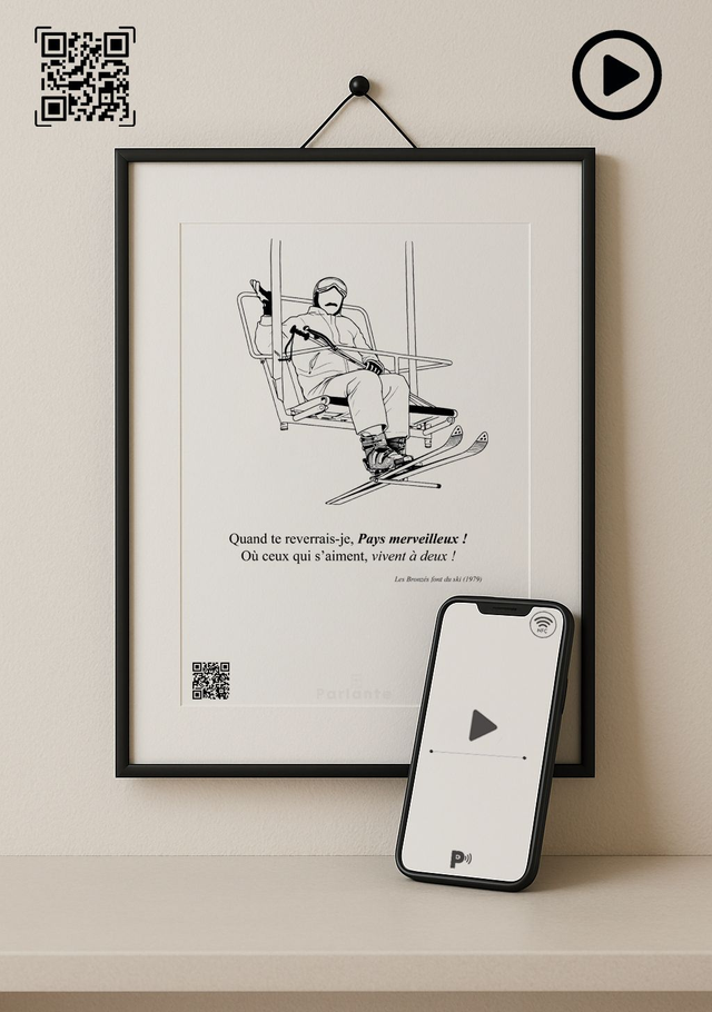 Affiche minimaliste connectée cinéma Les bronzés font du ski | Quand te reverrais-je (Audio ou Vidéo inclus)