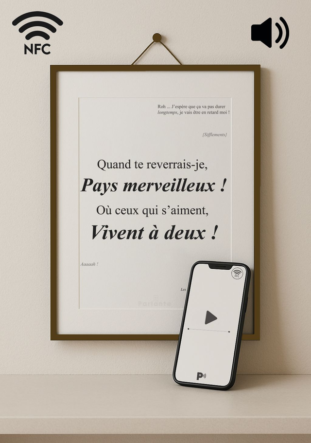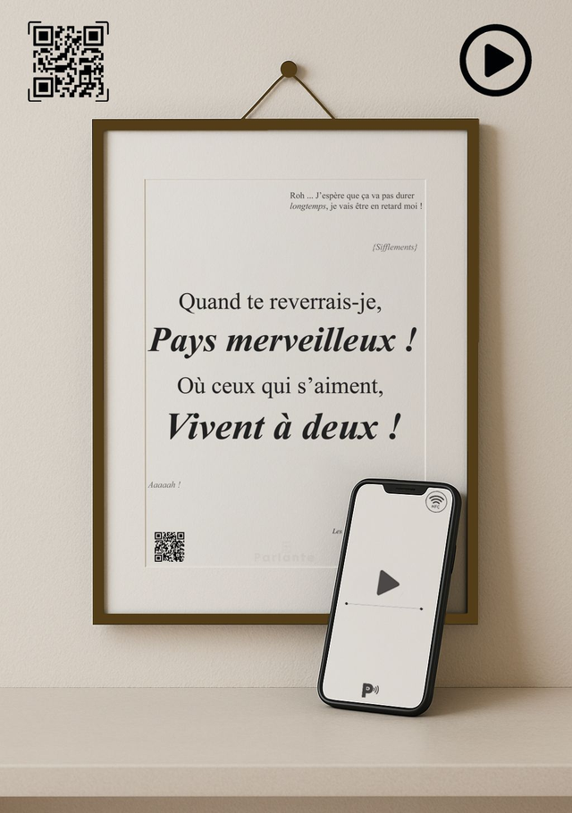 Les affiches peuvent être proposées accompagnées d’un QR code ou d’une puce NFC (au dos de l'affiche) permettant d’accéder à un contenu audio ou vidéo ( à choisir lors de la commande)
