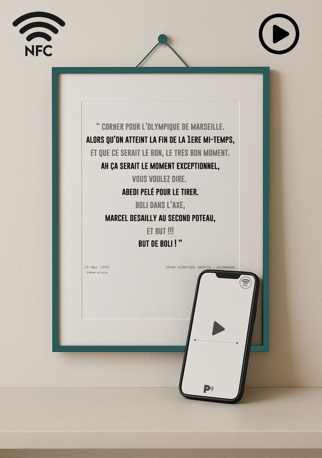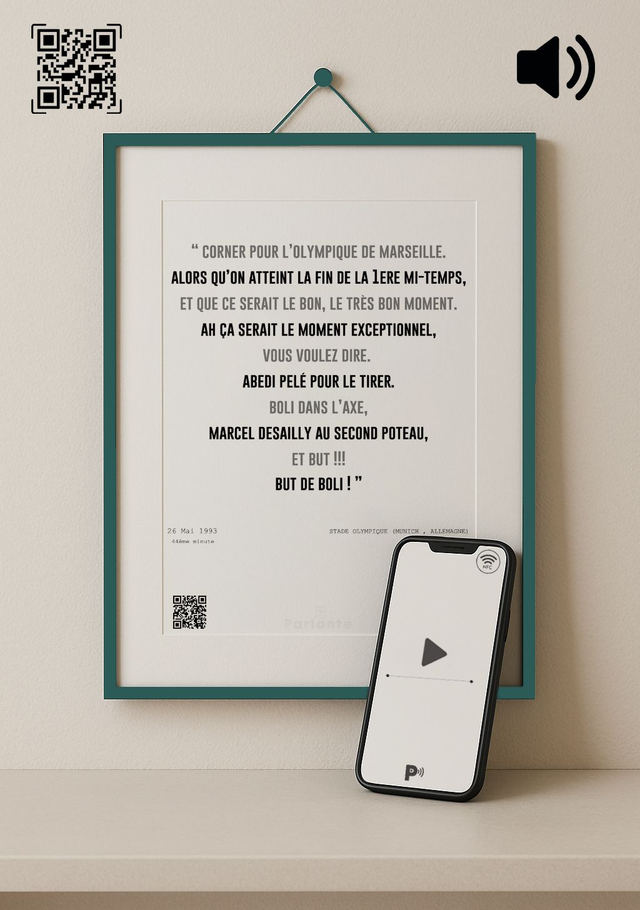 Affiche connectée football But Basile Boli 26 Mai 1993 OM Thierry Roland (Audio ou Vidéo inclus)