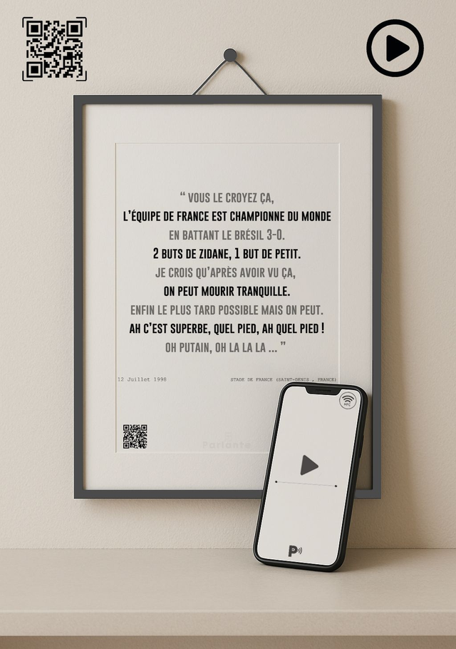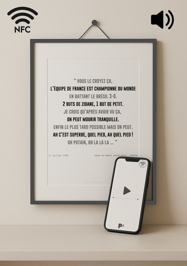 Affiche connectée football commentaire Thierry Roland France 98 (Audio ou Vidéo inclus)